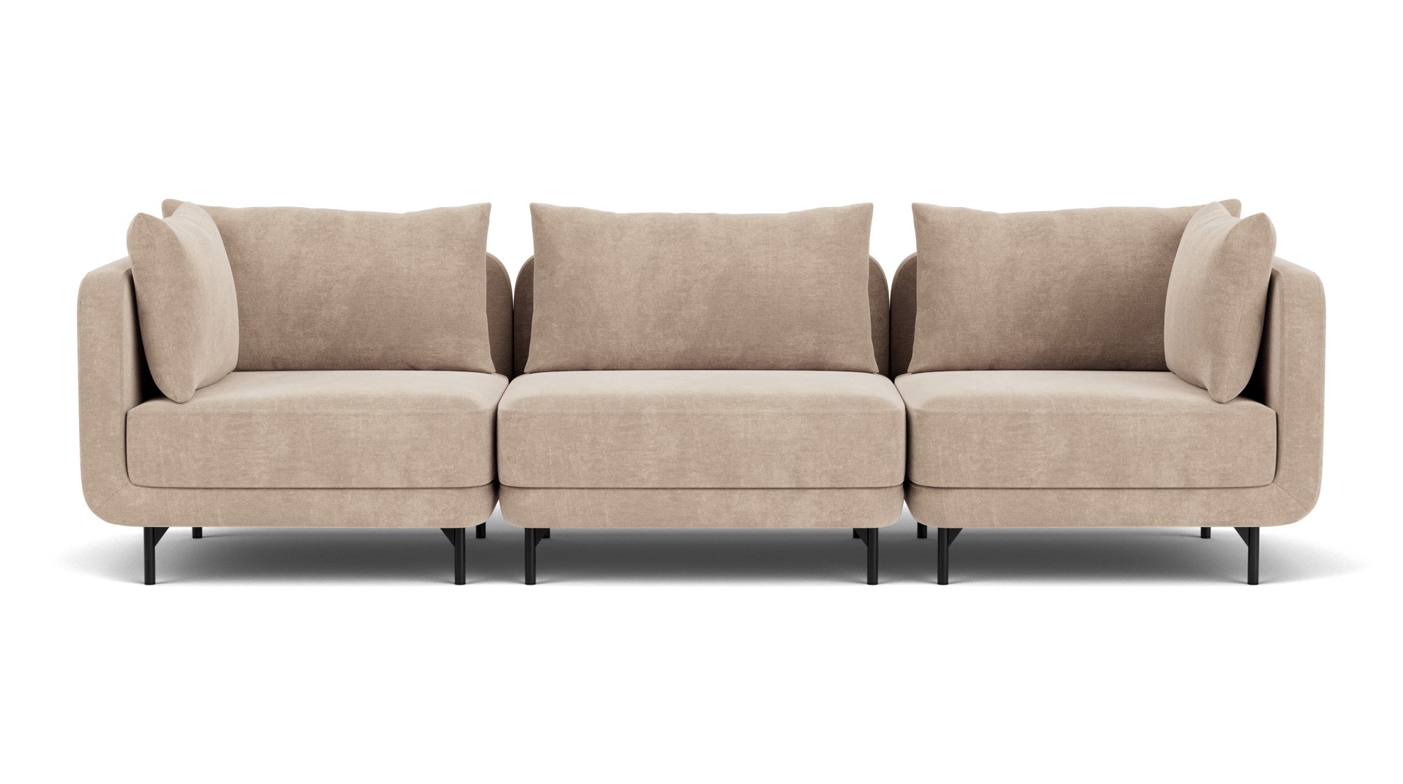 Maison is a versatile modular lounge sofa that delivers a spacious and inviting feel despite its compact footprint. Even though it’s slightly smaller than many traditional lounge sofas, you still get that true, laid-back “lounger” experience. The loose seat and back cushions offer soft, comfortable support while creating a refined contrast to the sleek, minimalist metal legs.